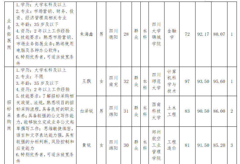 根據(jù)高開(kāi)司發(fā)布的招聘公告及招聘相關(guān)規(guī)定,經(jīng)筆試、面試等程序,現(xiàn)將成績(jī)予以公示。